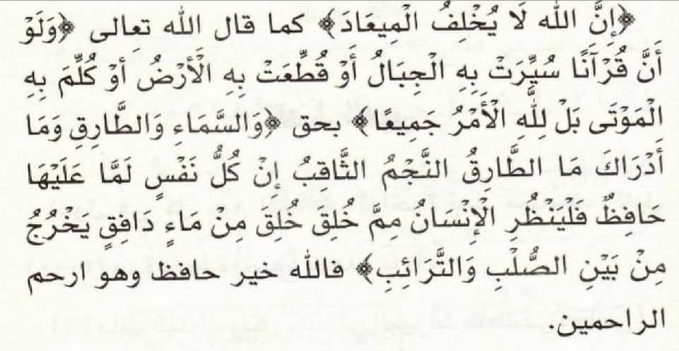 zikr du Verset après chacune des 5 prières aux adads donnés
