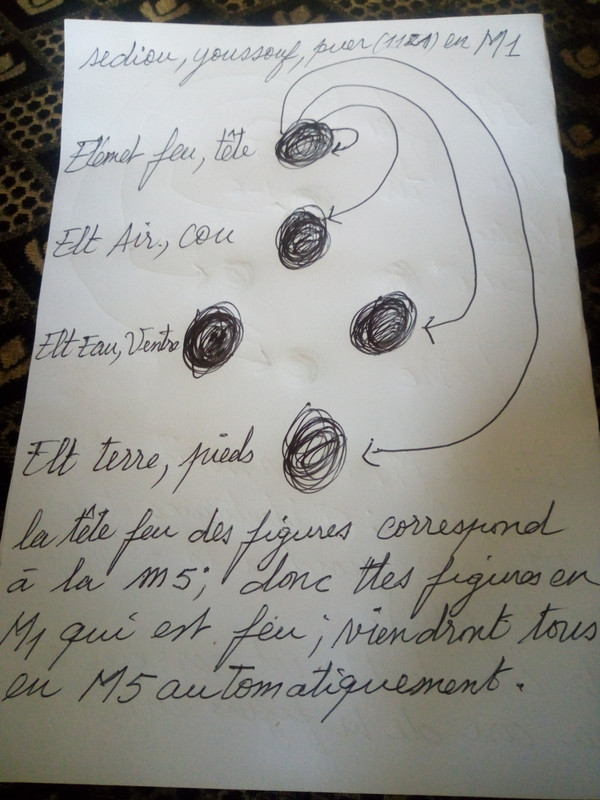 Allons pour la 2e explications, si la tête de la figure en M1 est ouvert et que le pied de cette même figure est ouvert également, cela veut dire que Sediou ,Youssouf, puer en M1, peut venir en m8,car la tête represente notre M1 et le pied de M1 represente notre M8, donc si Feu de la Tête et le pieds de la Terre, sont identiques cela montre que la figure de Sediou, Youssouf ,puer (1121)en M1 peut venir en M8.