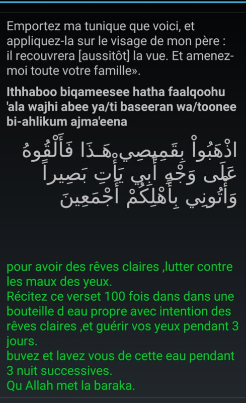 J’ai besoin des bienfaits du verset ci dessous