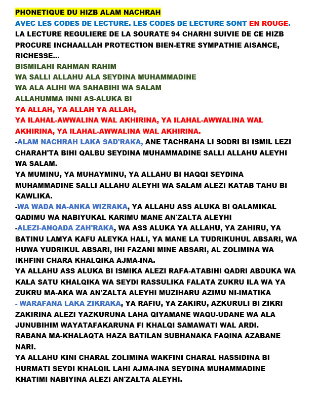 PS: maître si votre temps vous permet de nous donner le hizbou de mercredi j’en profiterai pour faire le zikr proposé par davidoffolle.