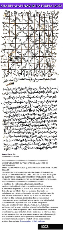 NB: Pour les nouveaux arrivants, faites attention car il y’a beaucoup d’escrocs se disant maître et qui n’ont rien à voir avec le blog. Ils sont là pour exploiter la faiblesse des gens, les proposant des remèdes de tout genre, de faux zikres ou même des zikres et prières incomplètes. D’autres escrocs sont allés jusqu’à créer des blogs ou des pages Facebook , copiant les recettes du blog pour tromper comme le compte facebook » Secrets d’Afrique » d’un certain Amadou Diop. Merci de prendre garde , signaler et partager des infos par rapport à ces blogs ou compte facebook pirates.