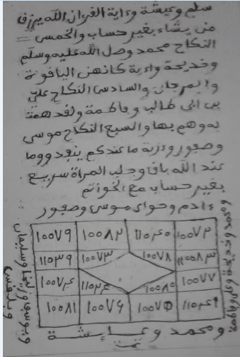 Wa çôlla LaHou Ala Seydina Mohammadin EL’FATiHi LiMA OUGHLiQA WAL KHAATiM LiMAA SABAQA NAçiRiL HAQi BiL HAQi WAL HADî iLA çiRATiKAL MOUSTAQîM WA ALA ALiHi HAQA QADRiHi WA MiQ’DARiHiL AZHîM