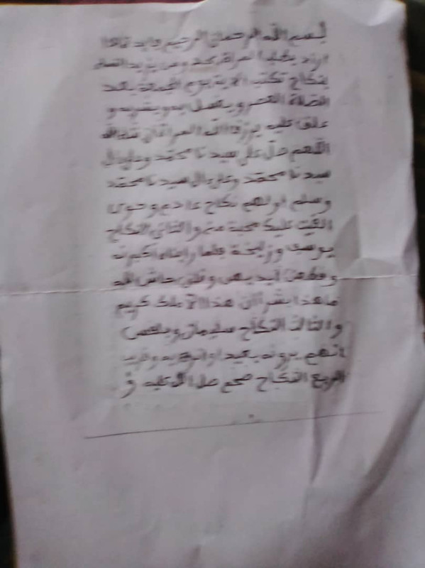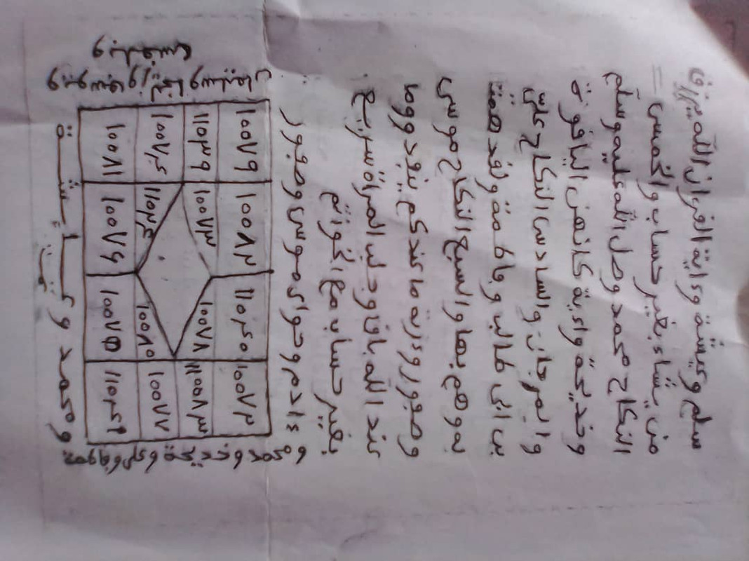 Écrire cette invocation 66 fois, tranformer en nassi et faire boire au couple, homme et femme, après purification des dernières menstrues, pendant sept jours ( faire boire pendant 7 jours), sans moment défini, et renouveler au besoin après chaque menstrue.