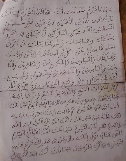 Par les noms qui T’appartiennent avec lesquels Tu T’es nommé, ou que Tu as révélé dans Ton Livre ou que Tu as enseigné à l’une de Tes créatures, ou bien que Tu as gardé secret dans Ta science de l’inconnu, je Te demande de rendre le Coran le printemps de mon coeur, la lumière de ma poitrine, la dissipation de ma tristesse et la fin de mes soucis.