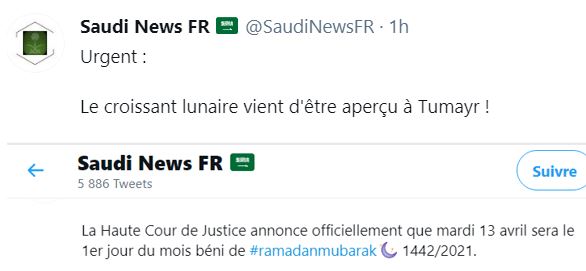 EN CONSÉQUENCE, LE 1ER JOUR DU MOIS DE RAMADAN 2021 SERA MARDI 13 AVRIL POUR CERTAINS ET MERCREDI 14 AVRIL 2021 POUR D’AUTRES.