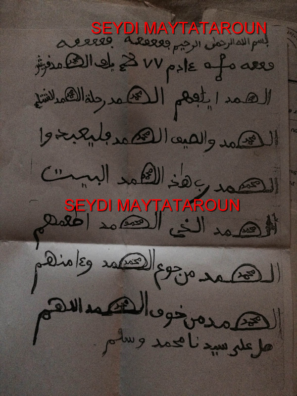 NB: Quand vous marchez avec le satin rouge dans la main gauche remplie des 41 cola dont vous venez de réciter Yassine ( la sourate): peu importe la personne qui vous appelleras ou quelqu’en soit ne saluez personne ni parler à personne. Pourquoi? C’est créature vous appelleras de toutes sortes de nom pour vous supplier à les donner les 41 cola ( qui doivent t’être leurs repas). Ils vont se chaimailler en disant que c’est eux qui l’auraient. Alors pour éviter ses erreurs de mal entendu entre eux. N’ouvre même pas la bouche ( si vous voudrez revenir au près de votre communautés.) La plu place c’est la Rage.