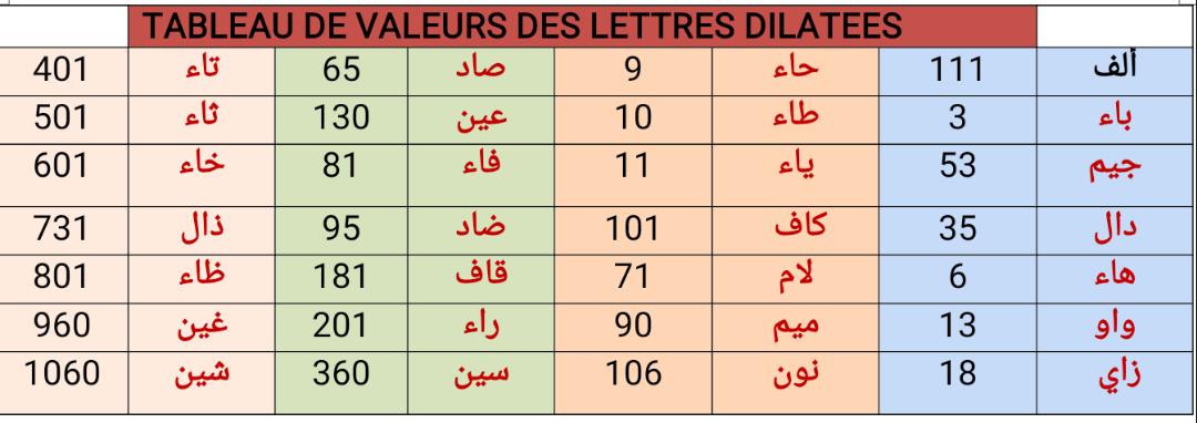 Exemple si tu veux calculer 129 valeur du nom LATIF
