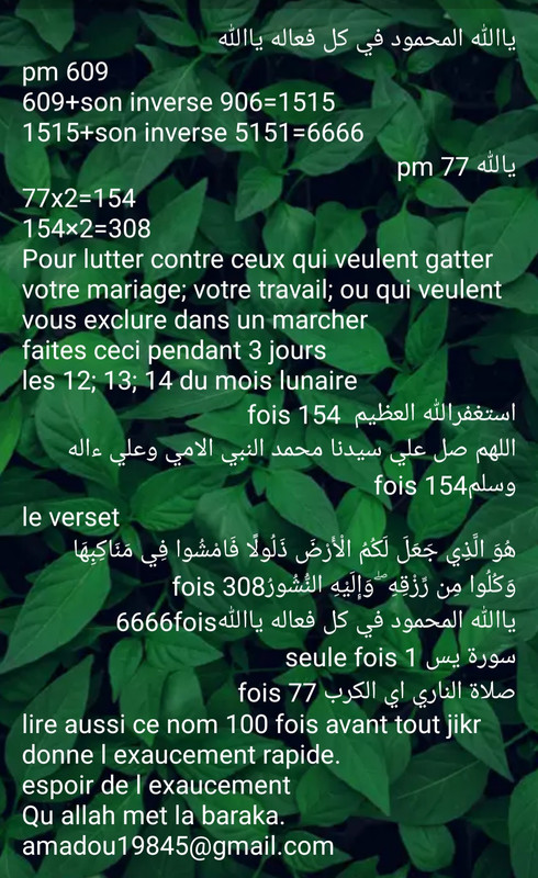 NB: Pour les nouveaux arrivants, faites attention car il y’a beaucoup d’escrocs se disant maître et qui n’ont rien à voir avec le blog. Ils sont là pour exploiter la faiblesse des gens, les proposant des remèdes de tout genre, de faux zikres ou même des zikres et prières incomplètes.