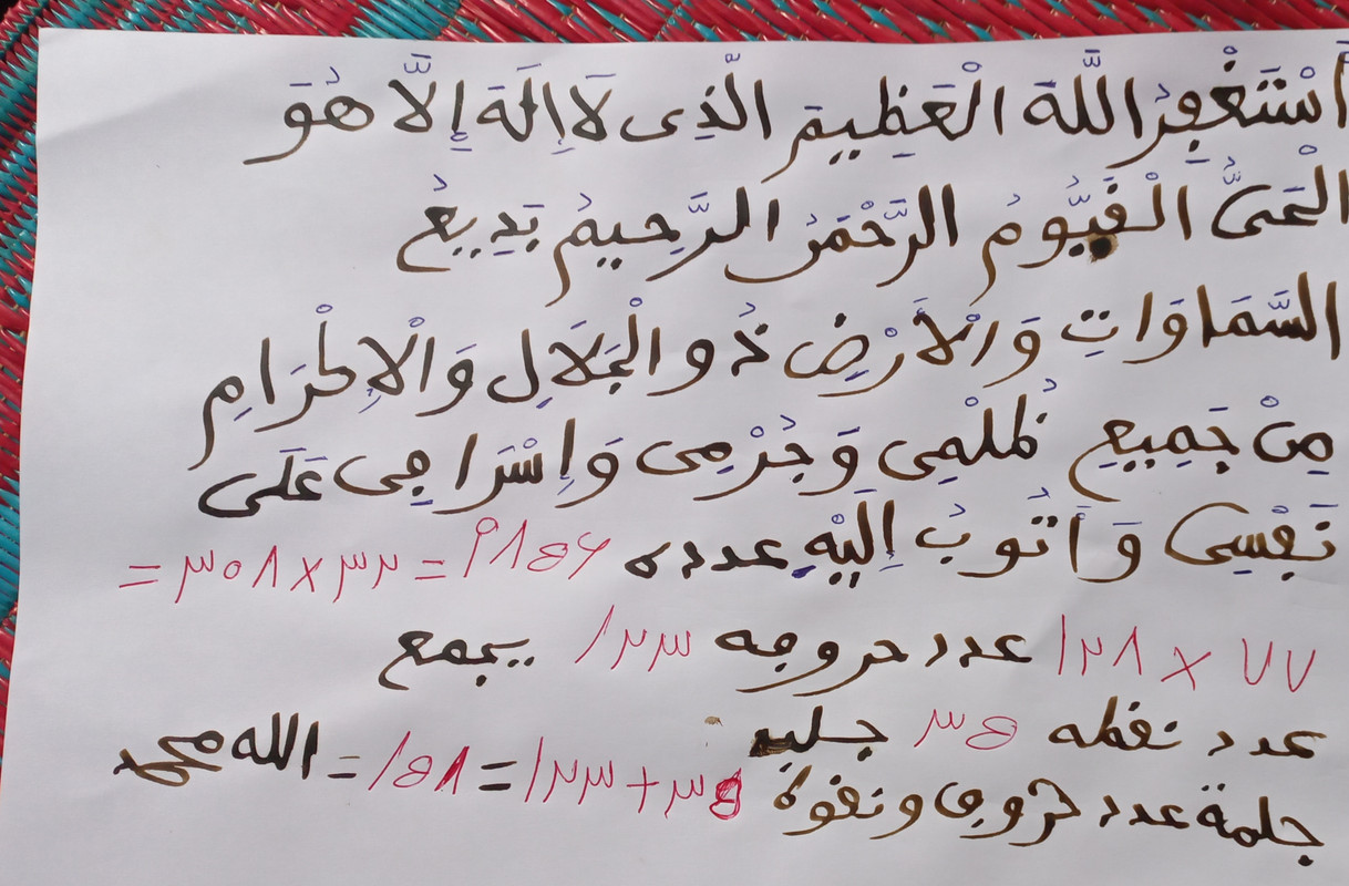 2eme. Oeuf: ecrire AWA LAM YARA LEZINA KAFAROUNA SAMAWATI WAL ARDI KA NATA RATGHANE FA ATAGHNAHOUMA WA DJALNA MINAL MA-I KOULLI CHAY INE KHAYIN FALA YOUMINOUNA.
