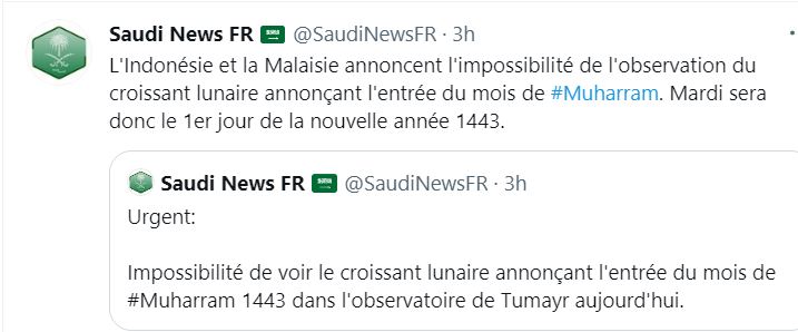 SERA CONSIDÉRÉ un peu partout comme LE 1ER JOUR DU MOIS DE MOUHARRAM 1443 (CORRESPONDANT AU DÉBUT DU NOUVEL AN MUSULMAN.