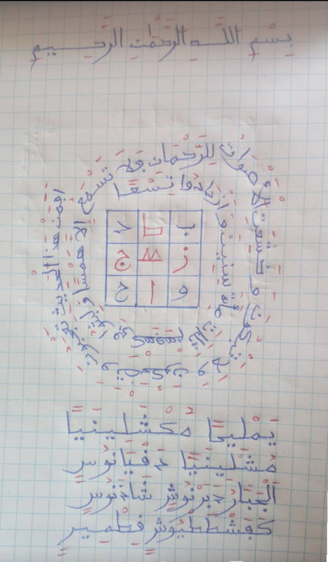 و من كتبه و سريع صغيرهم وكبيرهم بجد العالم والفهم لايتم الا ان يكون عامل ان شاءالله تعالى ان شربه طالب العلم ثم مات انزل الله الملائكة في قبره يقروءنه القرءان والعلم الى يوم القيامة إن شاءالله تعالى وهولاء الملائكة حافظين القرءان و تكتب اسمانهم على كل حزب من اقرءان قال رسول آلله ضل الله عليه سلام لاشك فيه و من شك فيه فهو كافر و من إرادة الفهم تغعله كما قال لك تكتبه يوم الخميس و تشربه يوم الجمعة ان بقي قليل تمسح على راسك ان كان صغير تكتبه و تتعلق عليه إن شاءالله تعالى يجد العلم و الفهم لان الملائكة المقربون يحفظون القرءان ثم تطلب برانا عجم مع طنبول ابيض وتدقهما ثم تصب في المكتوب مع العسل رطب ثم تشرب إن شاءالله تعالى