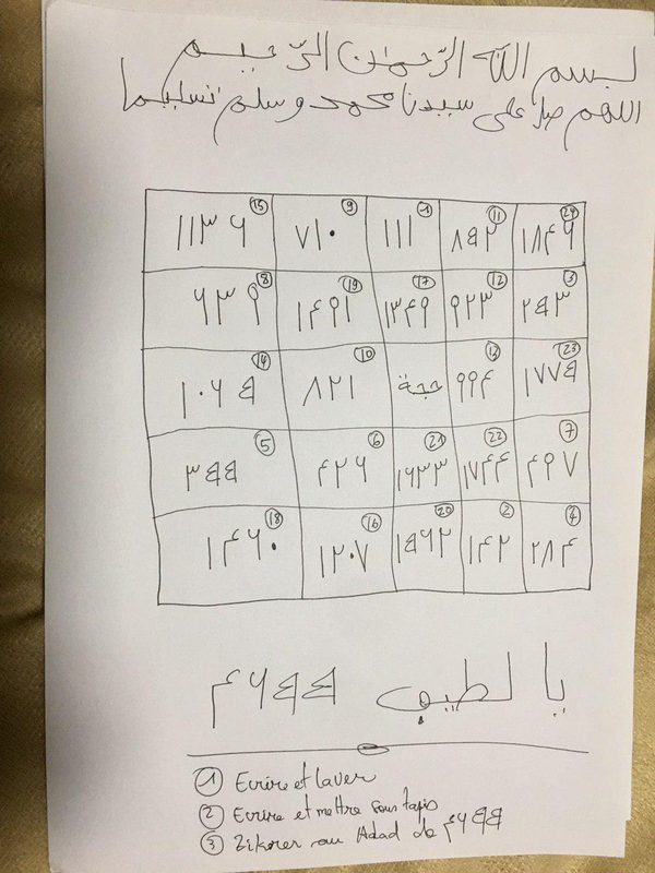 Pour ne pas que votre chance arrête on écrit chaque matin la figure Adama comme sous forme du Nancy 102 fois jusqu’à 45 jours chaque ,on se lave et on boit aussi.