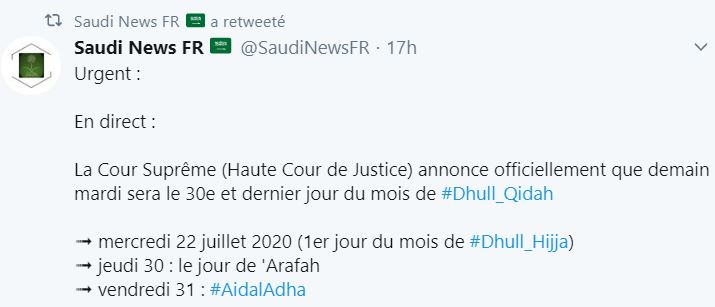 1ER JOUR DE LA NOUVELLE LUNE ZOUL HIJJAH 1441