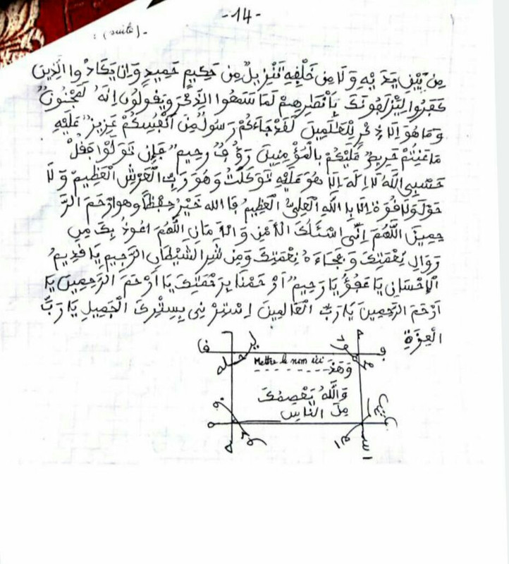 1- Ecrire 100 fois la lettre ي boire et se frotter le corps jusqu’à guérison