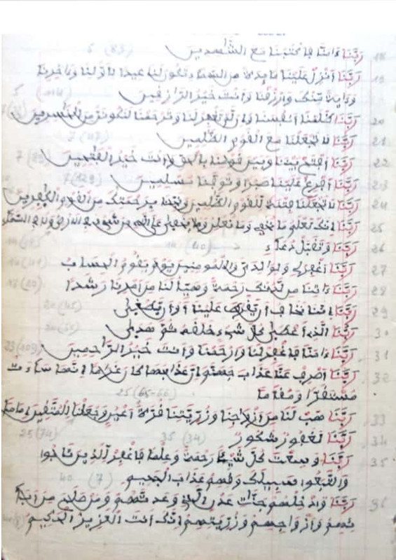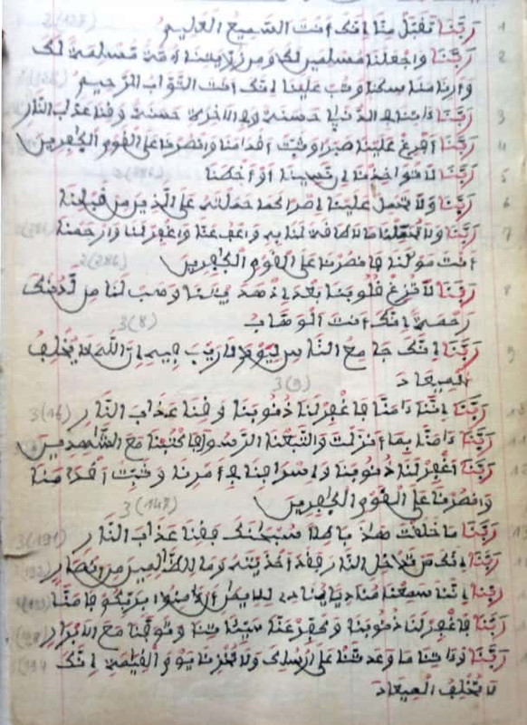 Après chaque verset de ladite sourate j’ai intercalé لمقنجخض puis le verset للبث succédé de chaque fils de لمقنجخض. Puis au 8e verset(donc le dernier) j’ai écrit uniquement للبث et ثم سبيل.